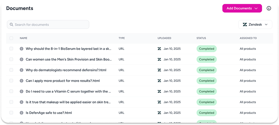 Gorgias Help Center content is continuously synced, so your AI agent always reflects the latest information and support guidance